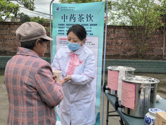 适宜技术体验区的医护人员,为颈肩腰腿痛、关节不适等群众缓解症状。设置中药茶饮品尝区,精心熬制保肝降脂茶、益气养元茶两款养生茶饮,工作人员现场讲解茶饮的配方功效与适用人群,引导群众树立“治未病”理念,在品味药香中学习养生知识。同时,现场免费发放中药香囊,展示各类中药文创产品,进一步提升群众对中医药文化的认知与认同。