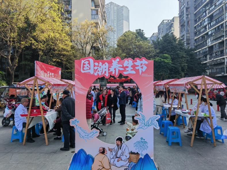 温江区“国潮养生节”中医药文化集市在金马街道开展。活动现场设置专家义诊区、适宜技术体验区、药食同源展示区、体质辨识与健康咨询区等多个功能板块,系统展示中医药防病养生的独特方法和实用知识。专家针对春季养生的时令特点,为市民提供个性化调养方案;针灸科、骨伤科现场为群众施行推拿、艾灸等中医外治技术,有效缓解各类痛症不适。